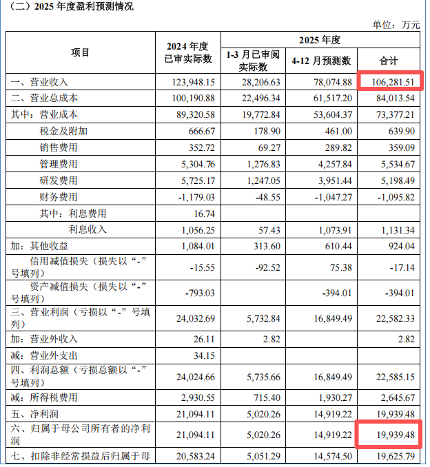 锦华新材预计,2025年全年,公司的营业收入为10.63亿元,同比下降14.25%;归母净利润为1.99亿元,同比下降5.47%。