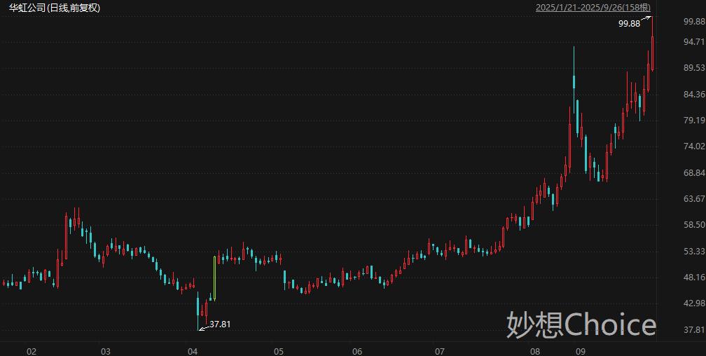 据Choice数据统计显示,剔除新股和次新股,包括紫金矿业、阳光电源、洛阳钼业、赛力斯、华虹公司、ST华通、徐工机械、浪潮信息、华工科技、晶合集成、杰瑞股份、华海清科、兴业银锡、科博达、科华数据、安集科技、中科飞测、剑桥科技、纽威股份、电气风电、宁波华翔、北方铜业、华建集团、聚辰股份、应流股份、精达股份、聚和材料、汇成股份、美湖股份、隆盛科技、菲林格尔、新坐标、*ST宇顺、统联精密、赛微微电、亚翔集成、优优绿能、捷邦科技、*ST亚振、合锻智能、易德龙、和远气体、锦华新材、金马游乐、智洋创新、唯特偶、品茗科技、佰奥智能、埃科光电、征和工业、太龙股份、通源环境在内的52家A股上市公司周五盘中创出历史新高(前复权),具体详见下图: