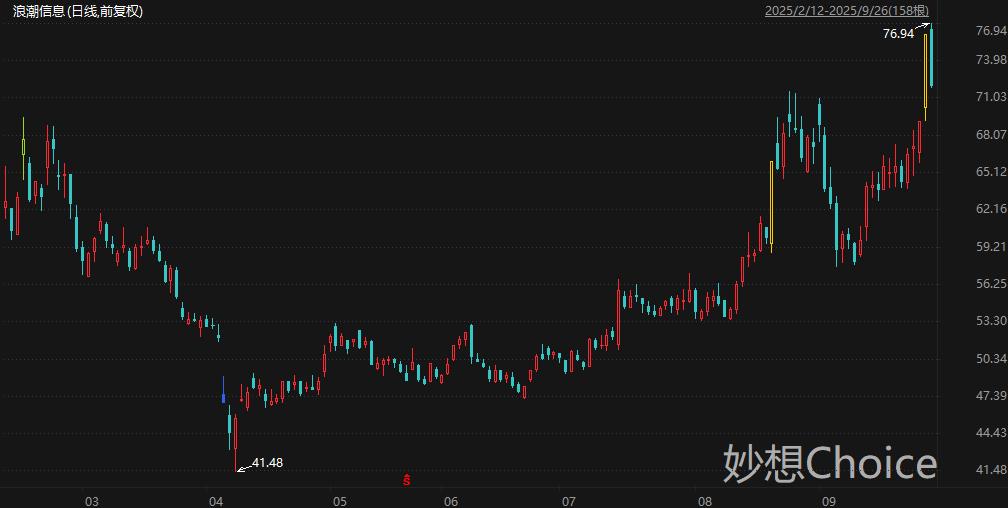 服务器市占率全球前二、中国第一的浪潮信息周五盘中触及76.94元/股,刷新历史新高,最新总市值超1060亿元。9月26日,在2025人工智能计算大会上,浪潮信息宣布,基于元脑SD200超节点AI服务器,DeepSeekR1大模型token生成速度仅需8.9毫秒,创造国内大模型最快token生成速度。最新发布的元脑HC1000超扩展AI服务器,实现每百万token成本首次击破1元。东莞证券分析师罗炜斌等人9月4日研报认为,浪潮信息将“All in液冷”纳入公司发展战略,全栈布局液冷。公司全线服务器产品均支持冷板式液冷,并从部件、整机到数据中心,持续进行液冷产品创新,公司已经连续4年蝉联中国液冷服务器市场第一。公司作为国内服务器龙头厂商,有望持续受益于人工智能产业的发展及液冷散热需求的增加。