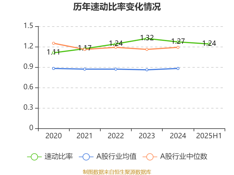 2025年上半年,公司流动比率为1.24,速动比率为1.24。