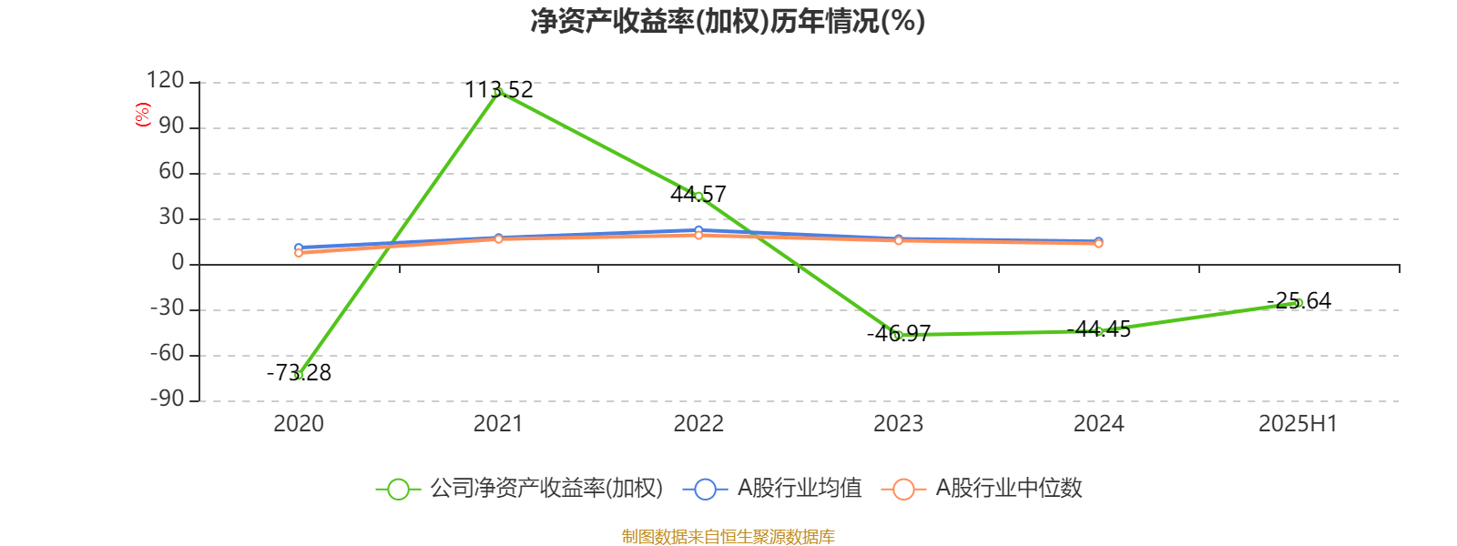 2025年上半年,公司平均净资产收益率为-25.64%,较上年同期下降2.89个百分点。