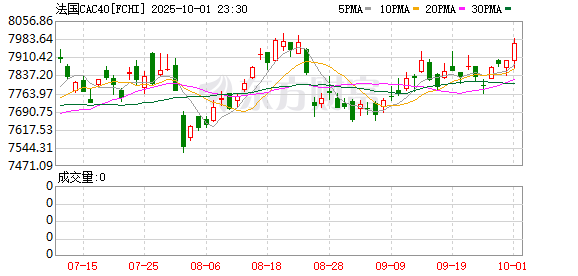 欧股市场:欧洲三大股指09月29日全线上涨。英国伦敦股市《金融时报》100种股票平均价格指数报收于9299.84点,较前一交易日上涨15.01点,涨幅为0.16%;法国巴黎股市CAC40指数报收于7880.87点,较前一交易日上涨10.19点,涨幅为0.13%;德国法兰克福股市DAX指数报收于23745.06点,较前一交易日上涨5.59点,涨幅为0.02%。
