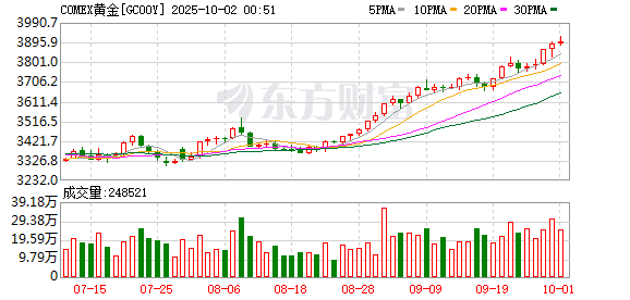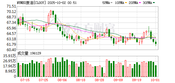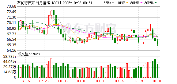 商品市场:国际油价09月29日下跌。截至当天收盘,纽约商品交易所WTI原油期货当月连续合约结算价下跌2.27美元,收于每桶63.45美元,跌幅为3.45%;伦敦布伦特原油期货当月连续合约下跌2.13美元,收于每桶67.09美元,跌幅为3.08%。国际金价再创历史新高,COMEX黄金期货当月连续合约上涨46.20美元,涨幅1.21%,报3855.2美元/盎司。
