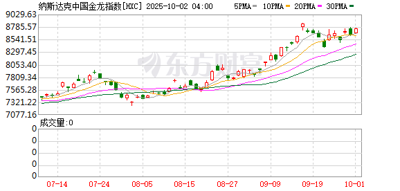 纳斯达克中国金龙指数收涨1.44%,热门中概股普遍上涨,百度、世纪互联涨超4%,京东涨超3%,阿里巴巴涨超2%,哔哩哔哩、小鹏汽车涨超1%。