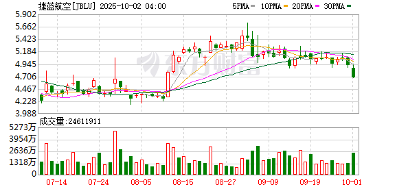 邮轮、社交媒体、航空服务跌幅居前,捷蓝航空跌超4%,联合大陆航空跌超3%。