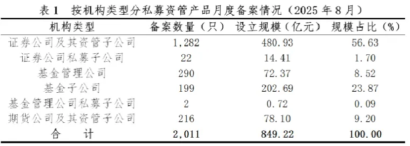 从机构类型看,8月备案的私募资管产品中,仍是证券公司及其资管子公司产品占比最高,其他机构与之差距显著。