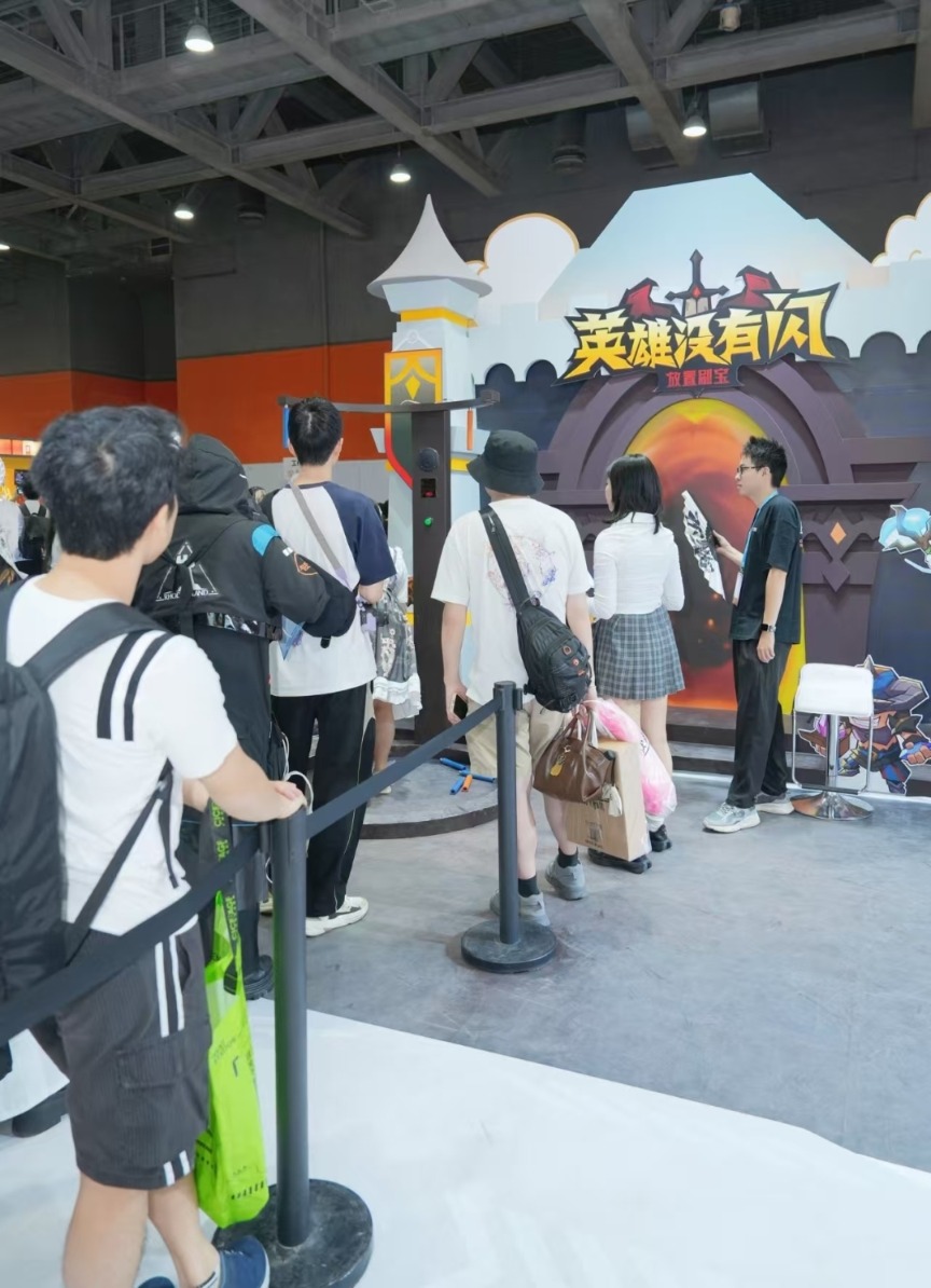 作为华南地区游戏领域的标杆企业之一,三七互娱通过精品游戏试玩、AI互动、数字赋能成果展示及限定周边派发等四大板块,构建起兼具娱乐性与文化内涵的沉浸式体验空间,成为展会最具人气的展台之一。其中,放置刷宝休闲游戏《英雄没有闪》则以其卡通化美术风格与快节奏对战模式吸引大量年轻玩家驻足。文明超进化模拟经营新作《时光大爆炸》则带来“时空穿越”的独特体验,让玩家感受上下五千年的波澜壮阔。除了游戏试玩以外,三七互娱在展台上还为这三款游戏定制了专属游戏场景,并提供一系列的新颖互动体验,进一步提升玩家的沉浸感。