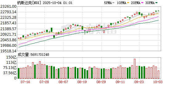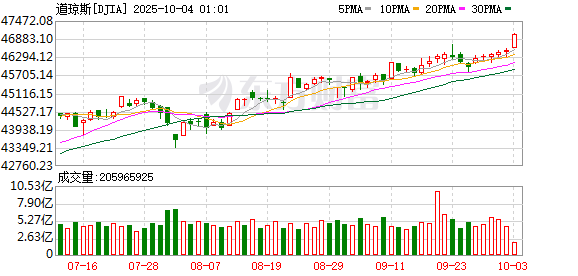 美股市场:美股三大指数10月01日收盘全线上涨。截止收盘,道琼斯工业平均指数比前一交易日上涨43.21点,收于46441.1点,涨幅为0.09%,创收盘新高;标准普尔500种股票指数上涨22.74点,收于6711.2点,涨幅为0.34%,创收盘新高;纳斯达克综合指数上涨95.15点,收于22755.16点,涨幅为0.42%。