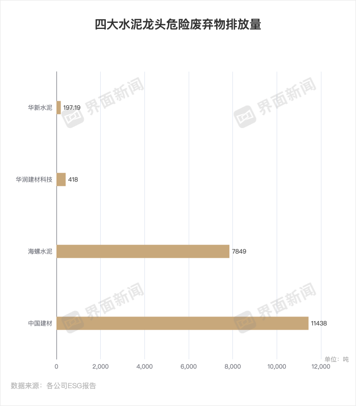 华润建材科技和华新水泥的危险废弃物排放量分别是418吨、197.19吨,同比下降5%、9.7%。