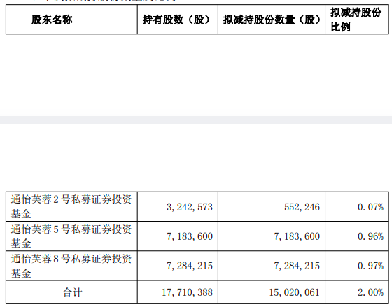 赢时胜8月20日晚间发布公告显示,私募巨头上海通怡投资旗下三只产品正计划减持不超过1502万股,占公司总股本比例不超过2%,减持期间为2025年9月11日至 2025年12月10日。