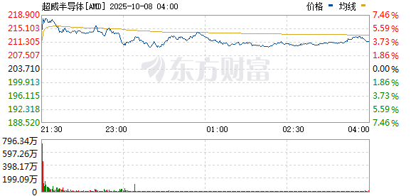 美东时间周二,美股三大指数冲高回落,纳指与标普创盘中新高,截至发稿,道琼斯指数跌0.31%,纳斯达克综合指数涨0.67%,标普500指数跌0.39%。AMD延续涨势,盘中涨超3%。