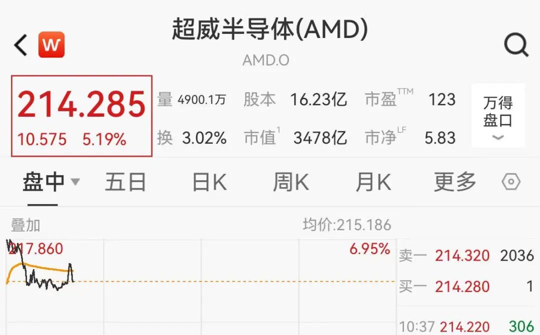 个股方面,AMD涨超5%。摩根士丹利将AMD目标价从168美元大幅上调至246美元。