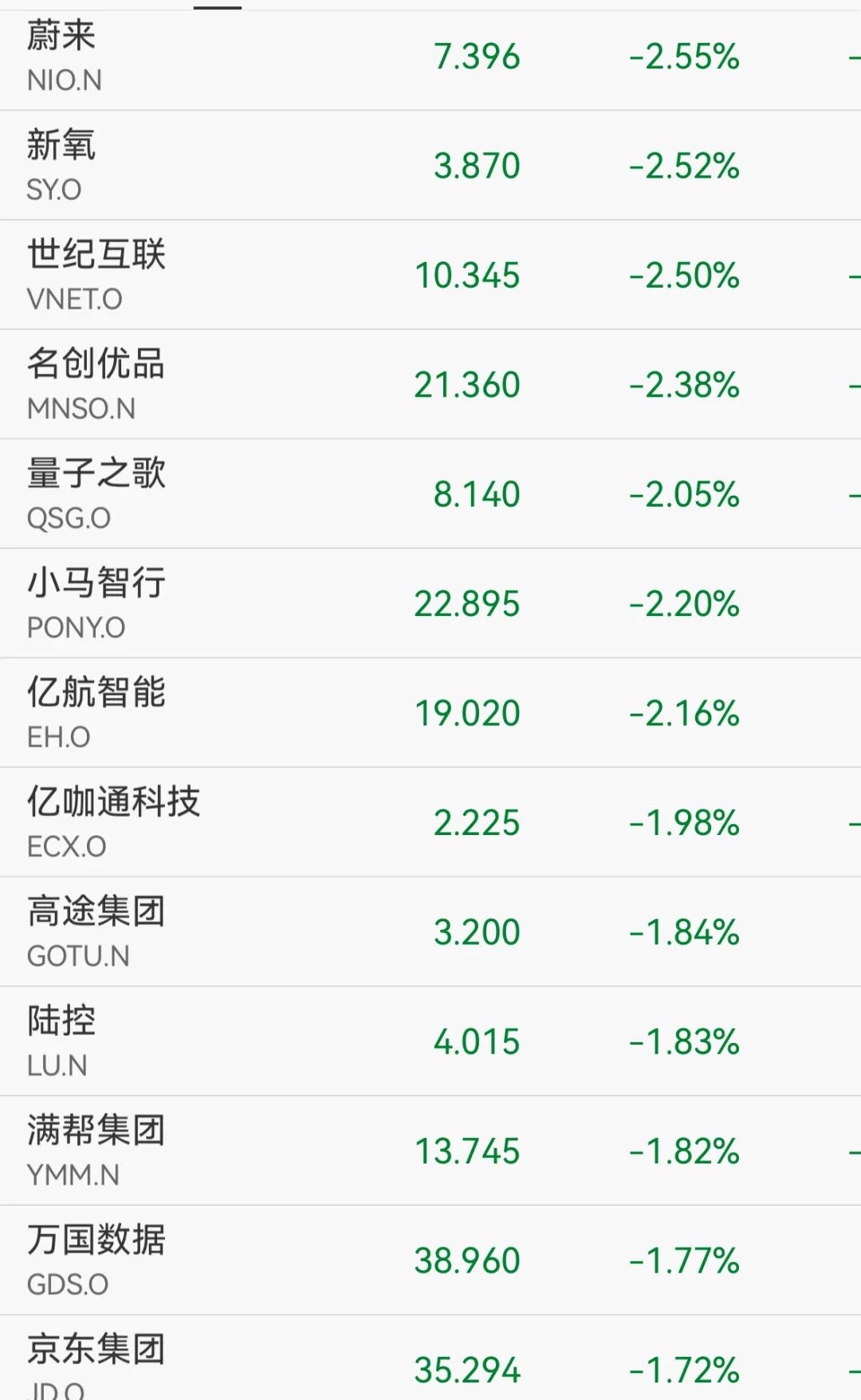 中概股方面,中国金龙指数跌超1%,多只热门中概股走低,小牛电动跌超7%,蔚来、名创优品、小马智行跌超2%,京东、哔哩哔哩、理想等跌超1%。