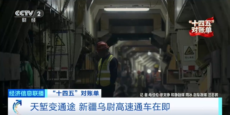 总台央视记者马佳伦:从天山胜利隧道乌鲁木齐端的入口进入,隧道内正在进行着机电、交通设施以及隧道内壁的涂装作业,很快就能具备通车条件。未来如果按照100公里每小时的时速来通行,相当于大家翻越天山最快只需要不到20分钟的时间。