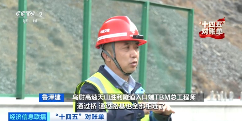 总台央视记者马佳伦:几年来,一座穿越天山腹地的胜利隧道、一条跨南北疆速度最快的高速公路,正打通天山阻隔,全线建设加速推进。再有两个多月,这条贯穿南北疆的超级工程就将具备通车条件。