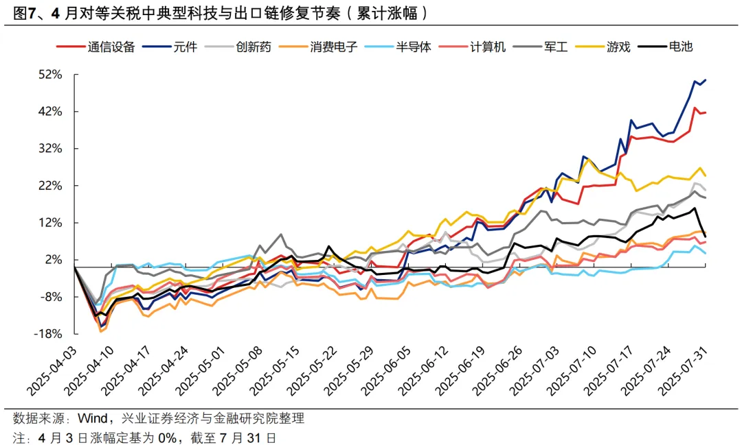 但当下,无论是我国对于内部政策和外部谈判所作的储备、还是投资者心态的转变,均发生了深刻的变化,不可与4月对等关税时期简单类比。