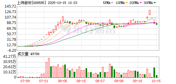 一度上演了连续10个交易日涨停、刷新A股纪录的科创板上市公司上纬新材(688585.SH)在10月13日迎来开盘即一字跌停。截至当天收盘,公司股价报105.68元,最新市值为426.27亿元。