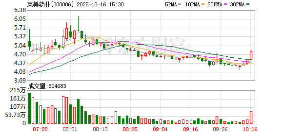 莱美药业报收4.80元,日涨幅7.14%,列渝股第一,换手率7.62%,今年以来的涨幅为31.15%。