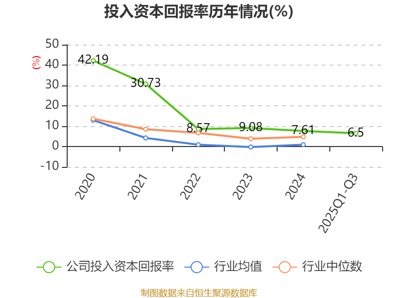 盈利能力方面, 2025年前三季度公司加权平均净资产收益率为7.56%,同比上升0.53个百分点。公司2025年前三季度投入资本回报率为6.5%,较上年同期上升1.17个百分点。