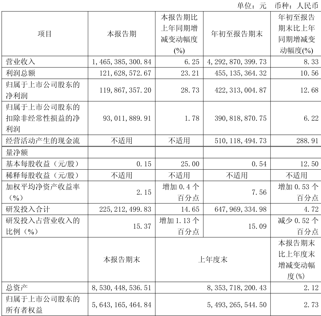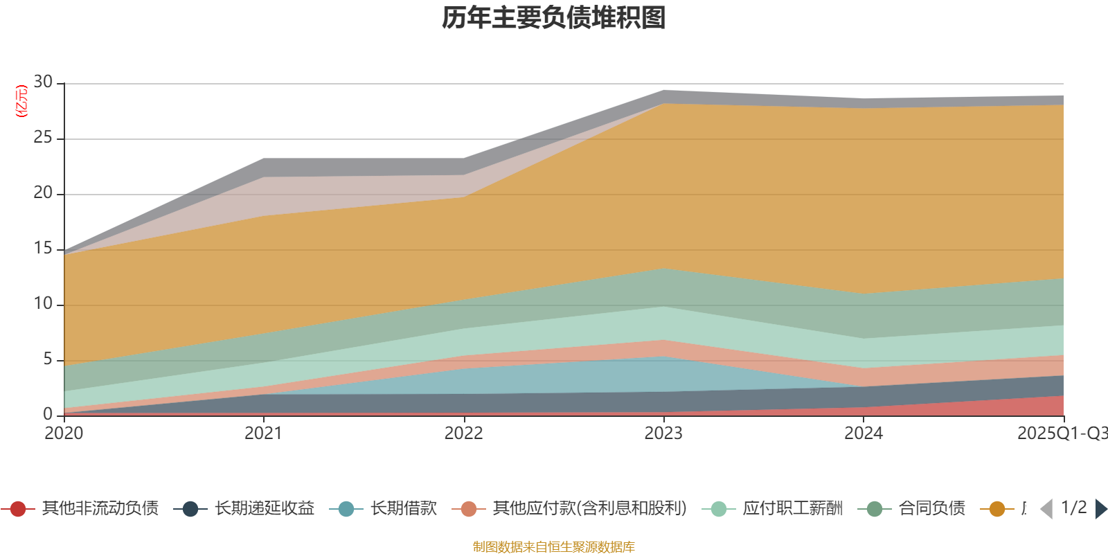 负债重大变化方面,截至2025年三季度末,公司应付票据及应付账款较上年末减少6.49%,占公司总资产比重下降1.69个百分点;其他非流动负债较上年末增加139.79%,占公司总资产比重上升1.19个百分点;租赁负债较上年末减少92.36%,占公司总资产比重下降0.18个百分点;其他应付款(含利息和股利)较上年末增加10.65%,占公司总资产比重上升0.17个百分点。