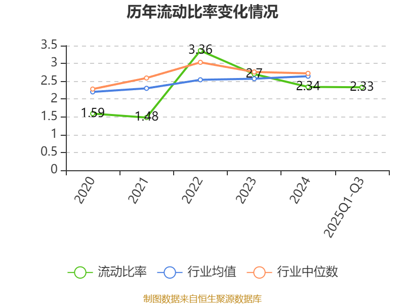 2025年前三季度,公司流动比率为2.33,速动比率为2.03。