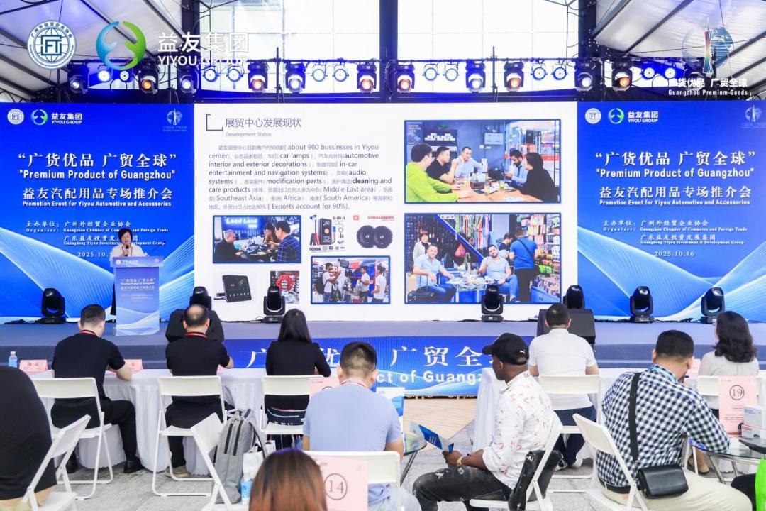 活动由广州外经贸企业协会与广东益友投资发展集团联合主办。当天上午的广交会展馆专场推介会上,广州市商务局对外贸易发展处副处长成静表示,广州正全力打造“广货优品广贸全球”城市IP,本次活动依托广交会“万商云集”的独特优势,将专业市场与国际采购需求精准衔接,是落实贸易强市规划的生动实践。广东益友投资发展集团负责人在推介中介绍,作为广州汽配对外贸易的“窗口”,益友(国际)汽配用品展贸中心总建筑面积约7万平方米,益友(广园东)汽配城总占地近2万平方米,已形成涵盖汽车配件、电子设备、美容养护等全品类的汽配用品产业集群,通过“跨境电商+产业带”模式助力商户拓展“一带一路”及RCEP市场,近年实现逆势增长。
