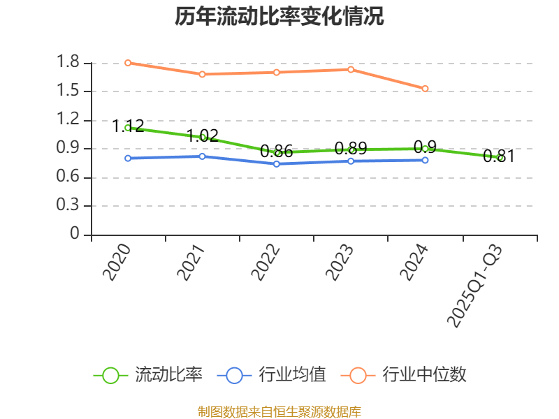 2025年前三季度,公司流动比率为0.81,速动比率为0.79。