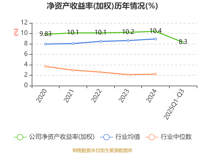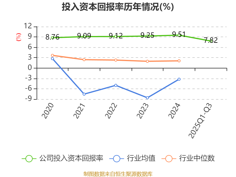 盈利能力方面, 2025年前三季度公司加权平均净资产收益率为8.3%,同比持平。公司2025年前三季度投入资本回报率为7.82%,较上年同期上升0.11个百分点。