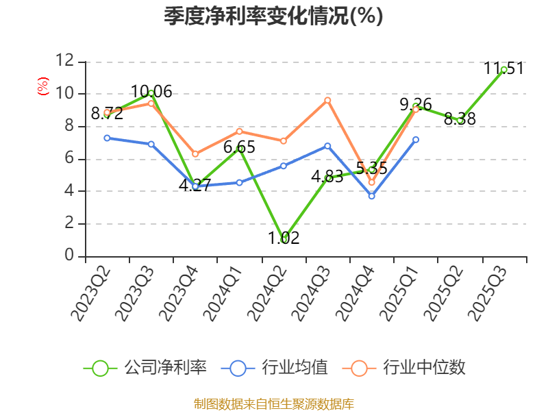 2025年前三季度,公司流动比率为1.98,速动比率为1.43。