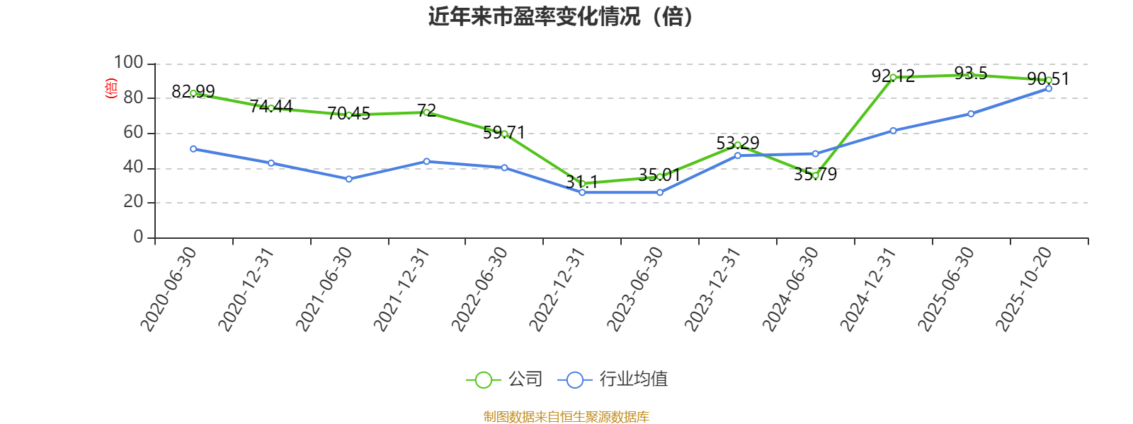以10月20日收盘价计算,金力永磁目前市盈率(TTM)约为90.51倍,市净率(LF)约7.64倍,市销率(TTM)约7.75倍。