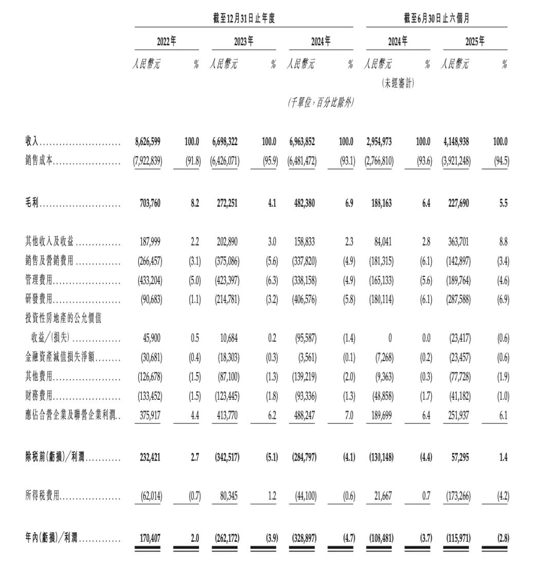 此次递表港交所,尽管招股书用“转型成效显著”描述业绩,2025年上半年营收41.49亿元,但深入核心财务数据可发现,公司盈利质量、转型效率与财务健康度均有待改善。