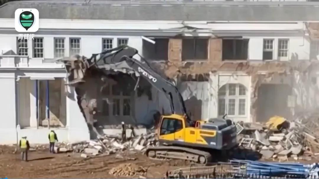 根据多家媒体20日发布的视频显示,挖掘机忙碌不停,工人喷水除尘,白宫东翼楼南侧入口通道和窗户正被拆除,露出混凝土和钢筋。