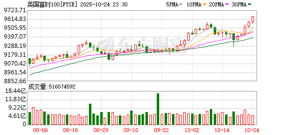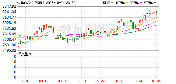 欧股市场:欧洲三大股指10月24日涨跌不一。英国伦敦股市《金融时报》100种股票平均价格指数报收于9645.62点,较前一交易日上涨67.05点,涨幅为0.7%;法国巴黎股市CAC40指数报收于8225.63点,较前一交易日下跌0.15点,跌幅为-0.0%;德国法兰克福股市DAX指数报收于24239.89点,较前一交易日上涨32.1点,涨幅为0.13%。