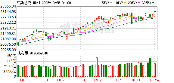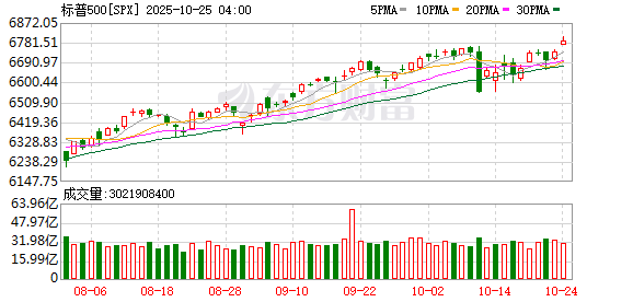 美股市场:美股三大指数10月24日收盘全线上涨,齐创历史新高。截至收盘,道琼斯工业平均指数比前一交易日上涨472.51点,收于47207.12点,涨幅为1.01%;标准普尔500种股票指数上涨53.25点,收于6791.69点,涨幅为0.79%;纳斯达克综合指数上涨263.07点,收于23204.87点,涨幅为1.15%。最新公布的美国CPI数据显示,9月通胀低于预期,增强了华尔街对美联储下周降息的信心。