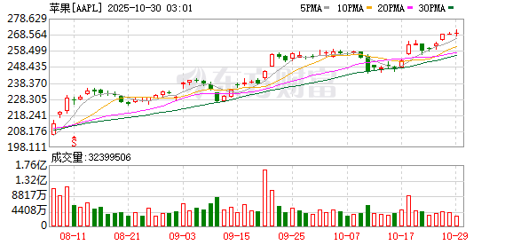 苹果股价周二再创新高,股价一度上涨至269.98美元,盘中市值首次突破4万亿美元,成为继英伟达与微软之后,第三家跨入“四万亿俱乐部”的全球科技巨头。