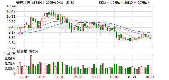 清越科技是一家致力于物联网终端显示整体解决方案的供应商。该股最新收盘价8.94元/股,市值规模40.23亿元。公司于近期发布2025年三季报,公司亏损有所收窄,但整体经营仍面临压力。报告期内,公司营业总收入为4.76亿元,同比下降13.64%;归母净利润为-4335.34万元,同比上升11.3%。