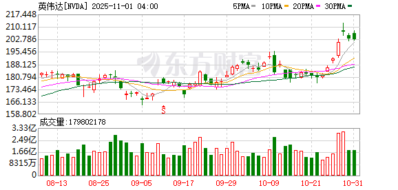 美国当地时间10月29日收盘,英伟达股价上涨3%,报207.04美元,市值为5.03万亿美元,成为全球首个市值突破5万亿美元的企业,其今年以来涨幅已超过50%。