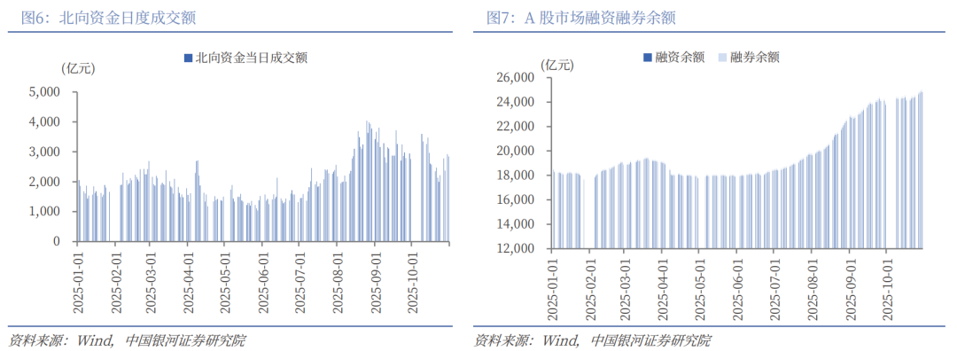 本周北向资金日均成交额为2728.62亿元,较上周的日均成交额上升494.07亿元。截至10月30日(周四),本周融资和融券余额均上升。两融余额为24990.48亿元,较上周上升419.07亿元。其中,融资余额为24811.49亿元,上升413.84亿元;融券余额为178.99亿元,上升5.23亿元。