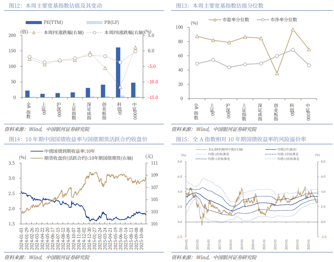 从行业层面来看,本周31个一级行业中,19个行业市盈率估值上涨。截至10月31日,从市盈率估值来看,共有22个行业估值高于2010年以来50%分位数,有7个行业的估值处于2010年以来20%-50%分位数区间,另外2个行业估值低于2010年以来20%分位数水平。其中,房地产、计算机、电子的PE估值分位数较高,分别处于2010年以来99.56%、95.69%、88.93%分位数水平;农林牧渔、食品饮料、非银金融的PE估值分位数较低,分别处于2010年以来7.24%、17.17%、25.52%分位数水平。