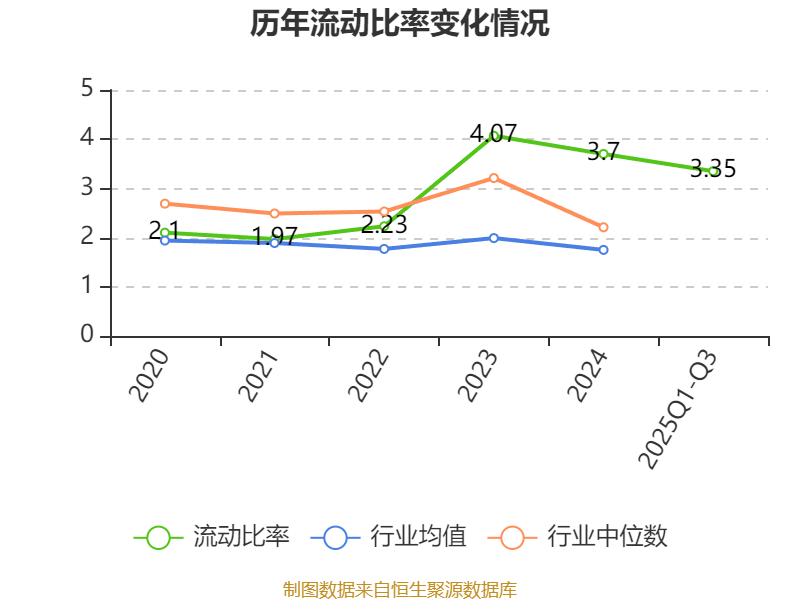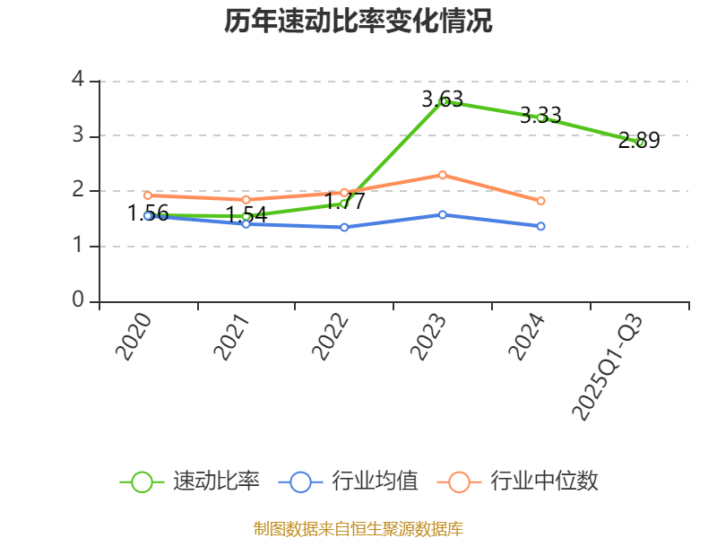 2025年前三季度,公司流动比率为3.35,速动比率为2.89。