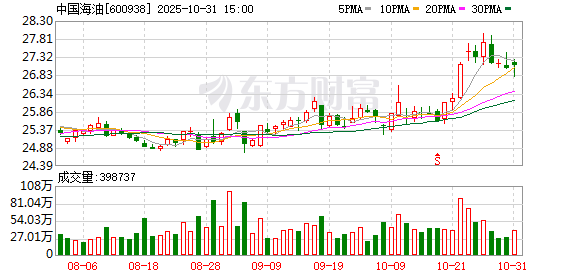 中国海油(00883.HK/600938.SH)归母净利润为1019.71亿元,同比下跌12.6%。