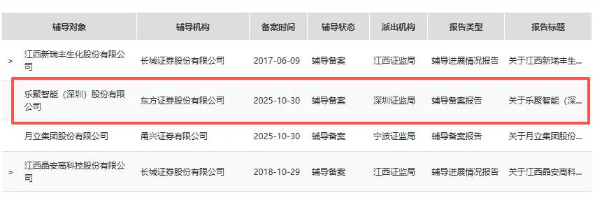 中国证监会网站显示,日前,乐聚智能(深圳)股份有限公司(下称“乐聚智能”或“公司”)在深圳证监局办理辅导备案登记,辅导券商为东方证券。根据备案报告,公司将于2026年3月至6月完成辅导工作。