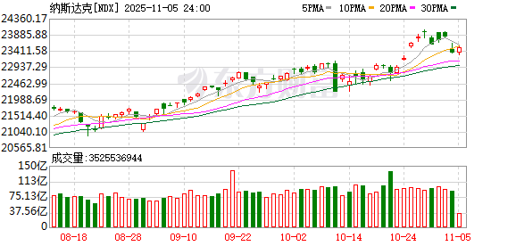 当地时间11月4日,美股三大指数集体收跌,纳指下跌486.08点,跌幅2.04%;标普500指数跌1.17%;道指跌0.53%。