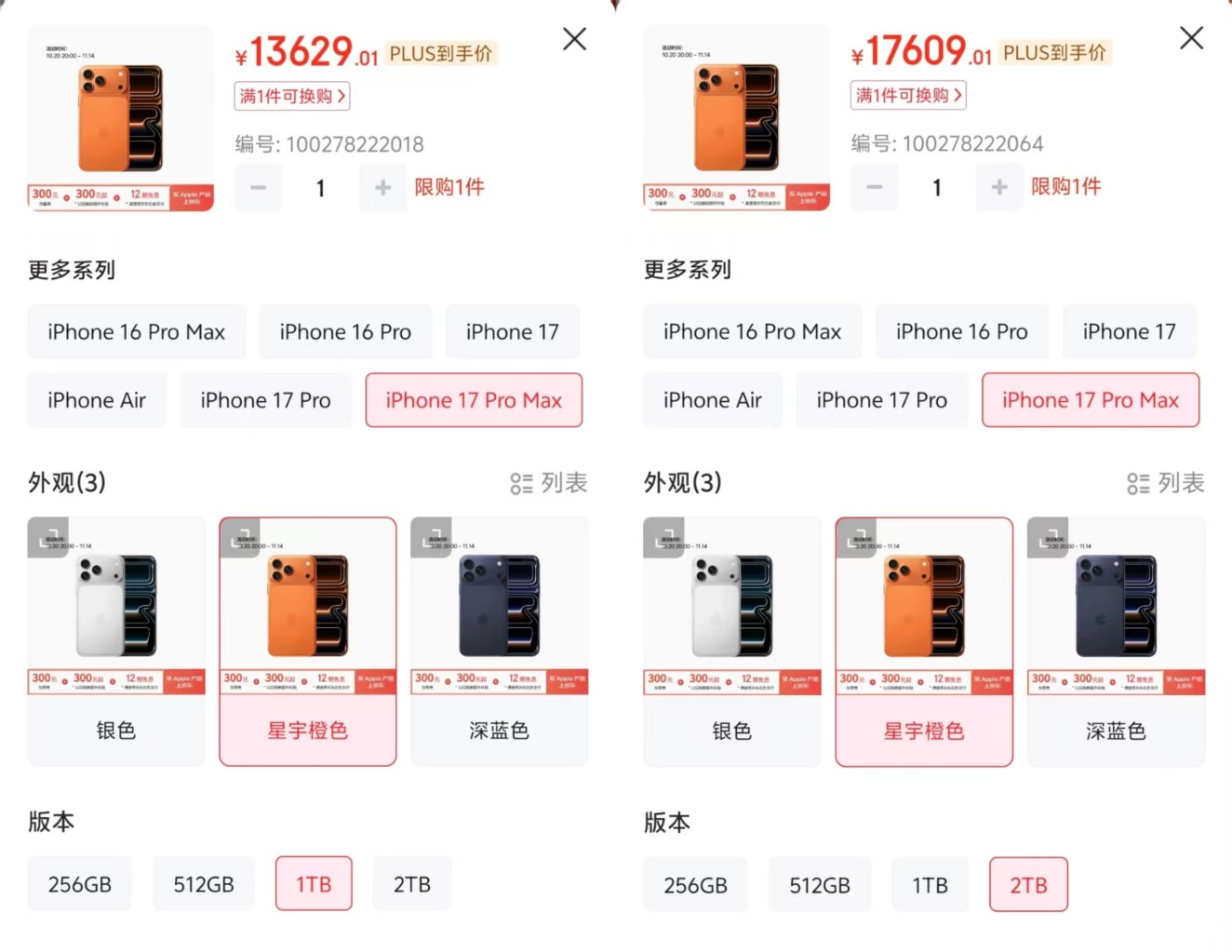 社交媒体上,关于“内存比黄金还疯”的讨论热度在过去一个月居高不下,话题一度冲上微博热搜。“iPhone 17 Pro Max的2TB版本比1TB贵出整整4000块,安卓阵营这边,从256G加到512G,差价也普遍飙升到500-600元。”有消费者在电商平台查价后表示,一夜之间,“存储自由”成了奢侈品。