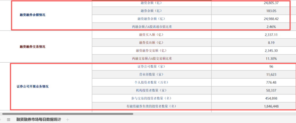 中证数据还显示,截至11月6日,A股融资余额2.48万亿元,两融余额占A股流通市值比重2.46%;两融市场中的个人投资者数量为776.48万名、机构投资者为5.03万家。其中,参与交易的投资者数量为45.5万名,有融资融券负债的投资者184.6万名,平均维持担保比例为281.62%。