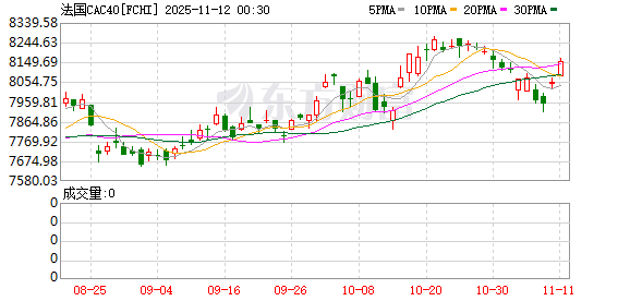 欧股市场:欧洲三大股指11月10日全线上涨。英国伦敦股市《金融时报》100种股票平均价格指数报收于9787.15点,较前一交易日上涨104.58点,涨幅为1.08%;法国巴黎股市CAC40指数报收于8055.51点,较前一交易日上涨105.33点,涨幅为1.32%;德国法兰克福股市DAX指数报收于23959.99点,较前一交易日上涨390.03点,涨幅为1.65%。
