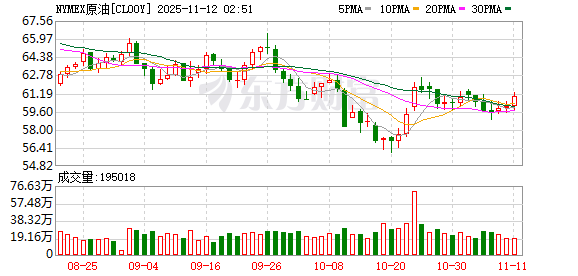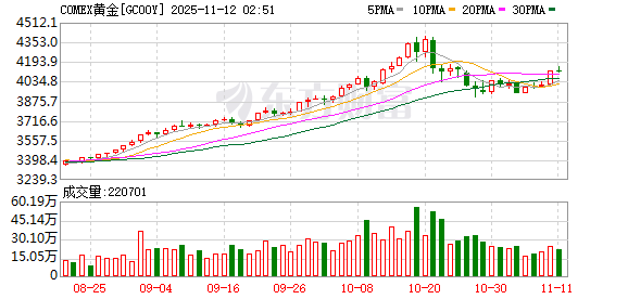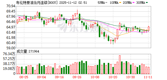 商品市场:国际油价11月10日上涨。截至当天收盘,纽约商品交易所WTI原油期货当月连续合约结算价上涨0.38美元,收于每桶60.13美元,涨幅为0.64%;伦敦布伦特原油期货当月连续合约上涨0.43美元,收于每桶64.06美元,涨幅为0.68%。COMEX黄金期货当月连续合约结算价上涨112.20美元,涨幅2.80%,报4122.0美元/盎司。