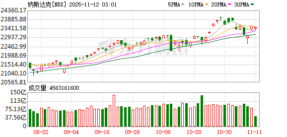 美股市场:美股三大指数11月10日收盘全线上涨。截至收盘,道琼斯工业平均指数比前一交易日上涨381.53点,收于47368.63点,涨幅为0.81%;标准普尔500种股票指数上涨103.63点,收于6832.43点,涨幅为1.54%;纳斯达克综合指数上涨522.63点,收于23527.17点,涨幅为2.27%。