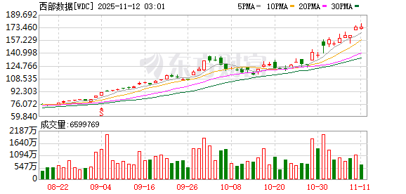 美股存储概念股普涨,美光科技涨超6%,闪迪涨近12%,西部数据涨近7%。