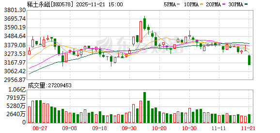 湘财证券近日发布研报,维持稀土磁材行业“增持”评级。该券商指出,一方面整体风险偏好走低及稀土出口政策缓和对板块高估值仍存压力,但随着稀土出口管制暂缓后出口需求向好及供给端偏紧预期下价格及景气度回升趋势有望延续,短期板块行情调整后有望进入震荡态势。一是继续关注上游稀土资源企业,一方面是供给收缩预期和战略价值定位的强化,另一方面是中期需求旺季到来带来的支撑,相关稀土资源企业有望受益盈利修复和估值溢价。二是随着稀土价格回升趋势延续,下游磁材企业盈利有望持续修复。
